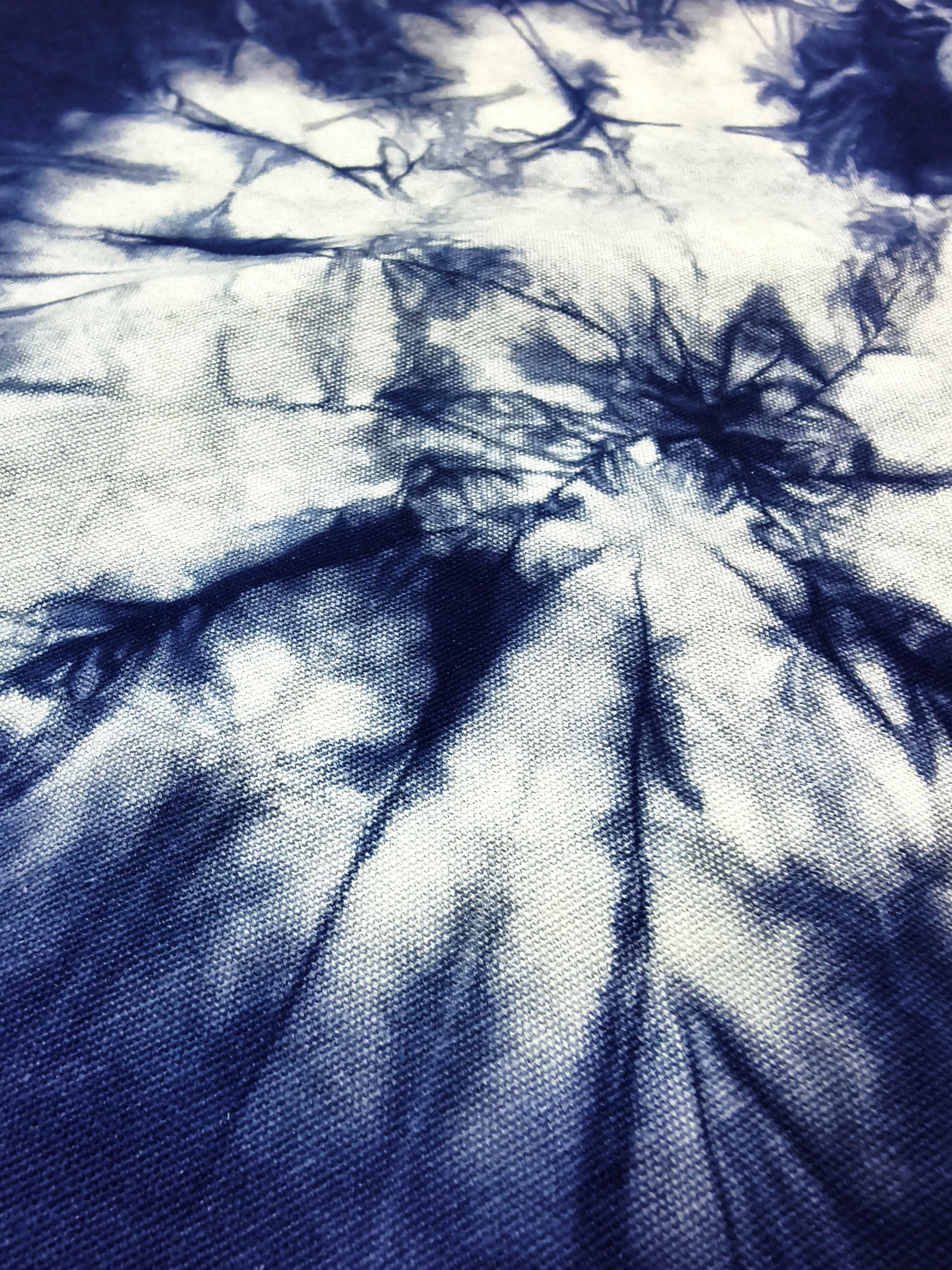 This 18 x 18 inch cushion cover is handcrafted using traditional batik techniques on rich indigo blue cotton canvas.