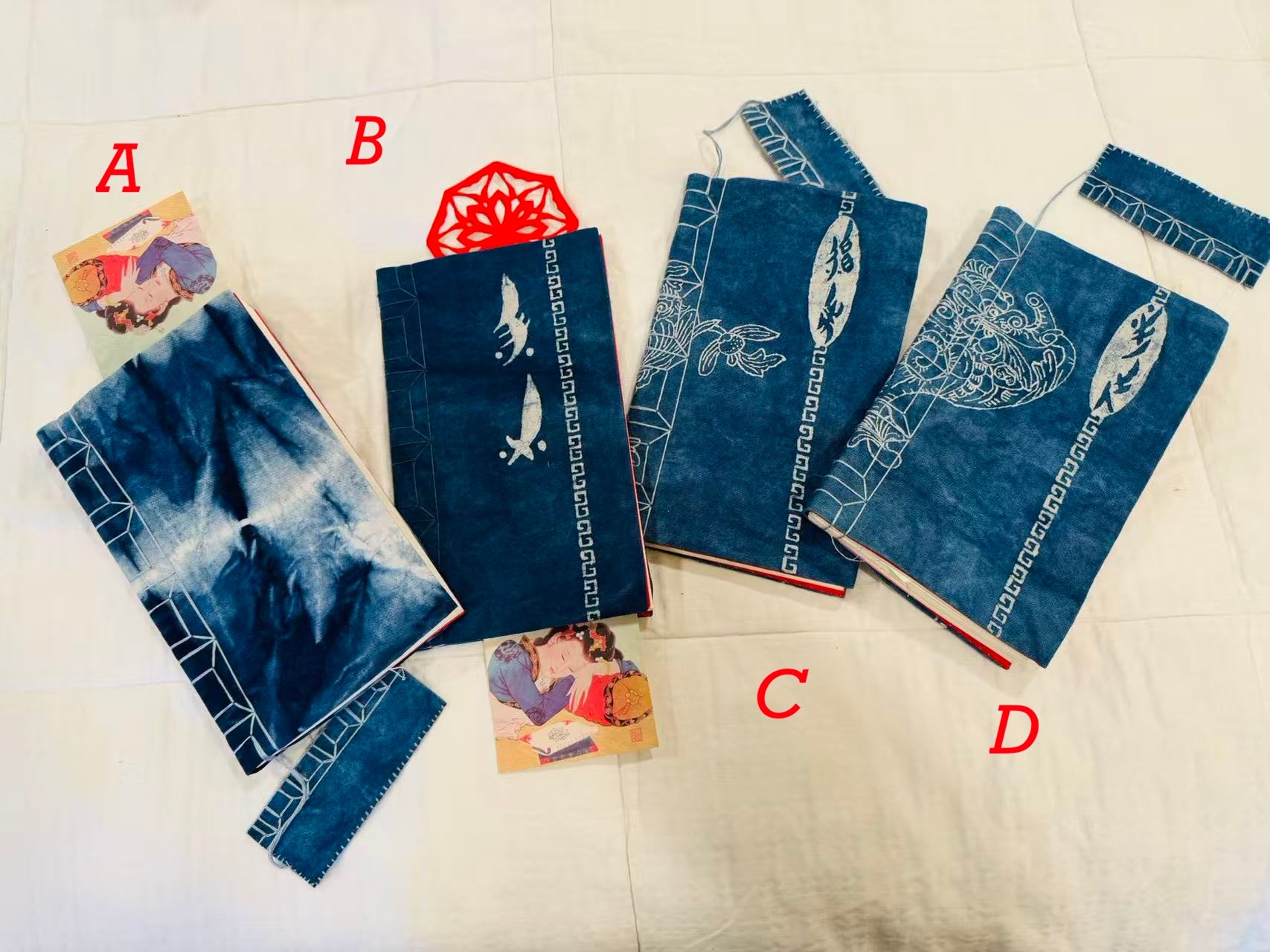 Due to the handmade nature of the batik fabric, the front and back cover patterns will vary. No two pieces are exactly alike.