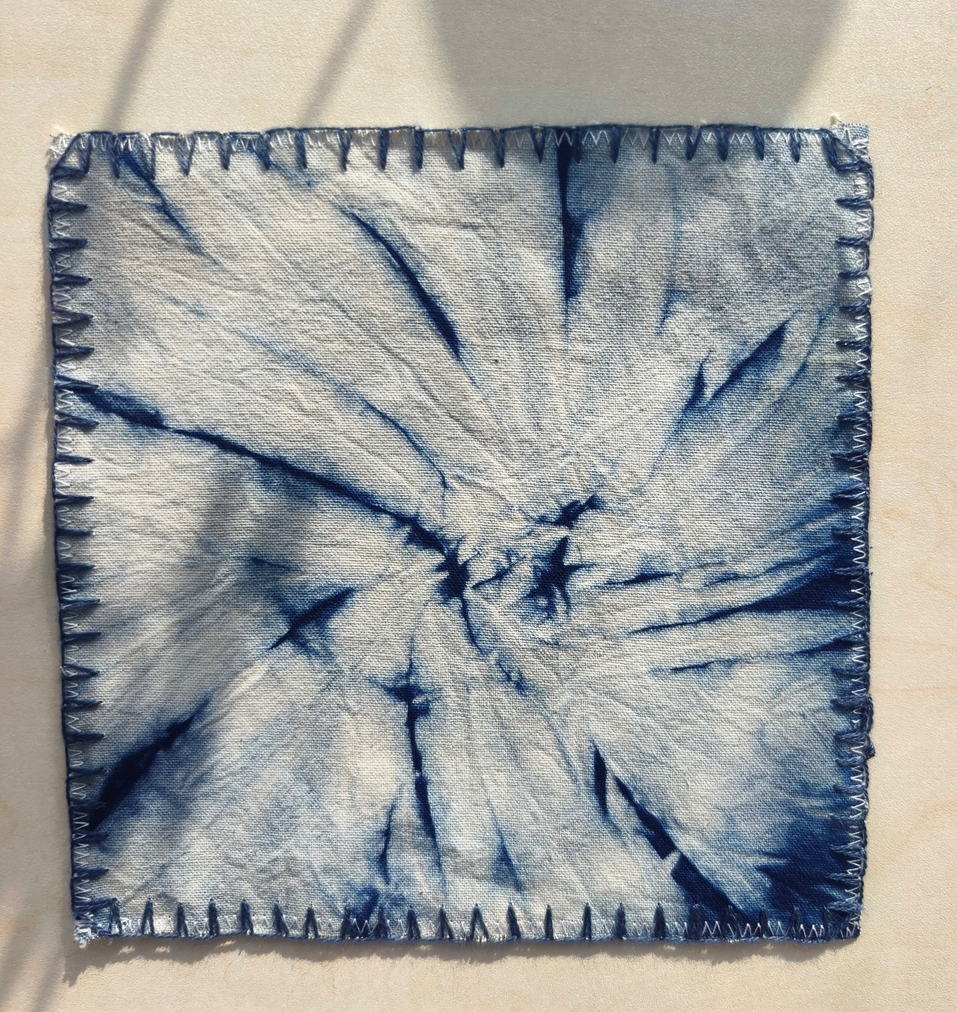 Each piece is individually hand-dyed using traditional batik techniques and carefully sewn with visible stitched edging. No two coasters are ever identical — every blossom pattern forms naturally through the dyeing process, making each set a one-of-a-kind textile artwork.