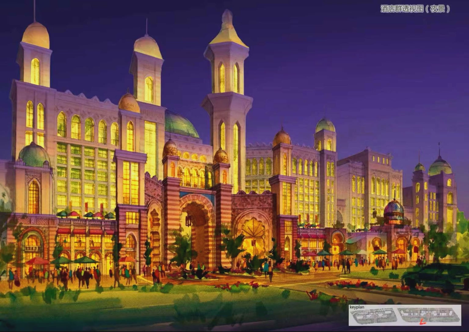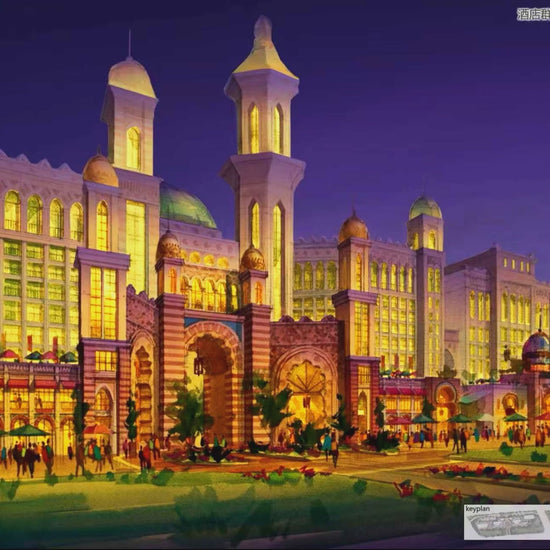 Style: Architectural illustration / Night cityscape / Fantasy architecture