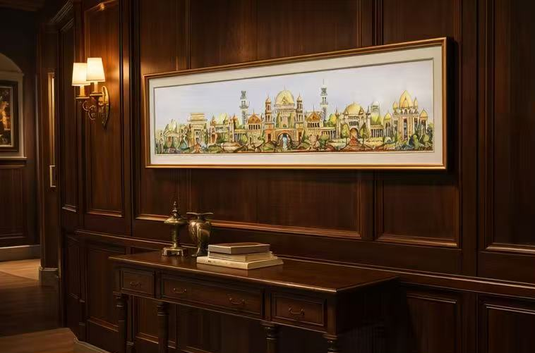 AP-07: Dreams of the Golden Kingdom – Color Edition | Limited Edition Signed Panoramic Art Print (8x38) by Kurt Xu | Architectural Cityscape Wall Art (Unframed)