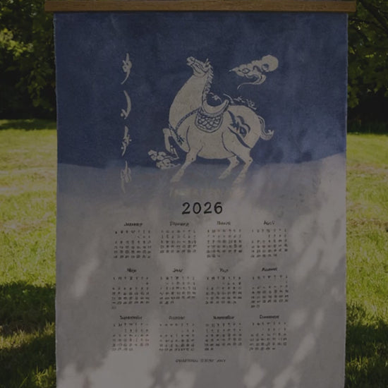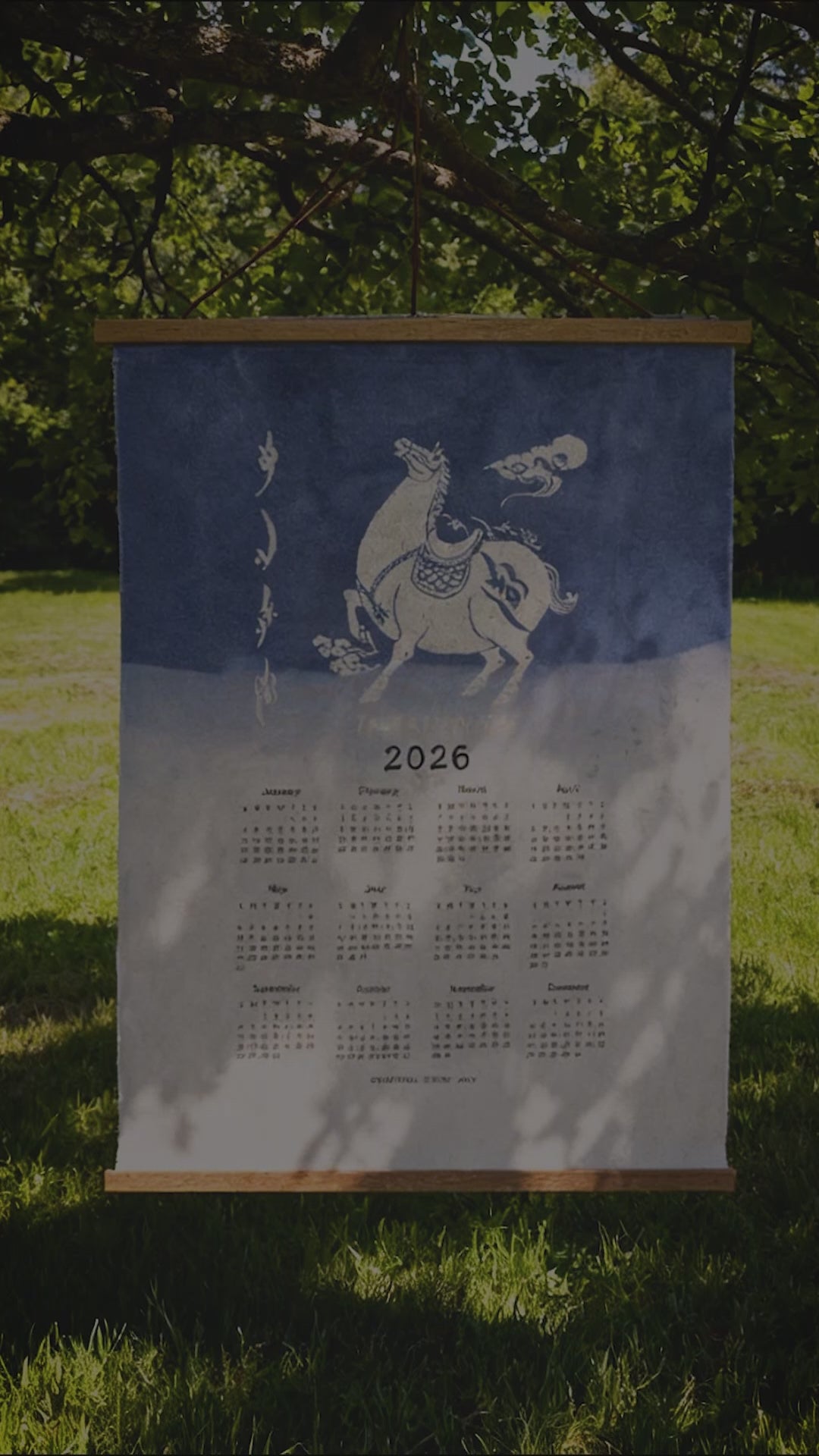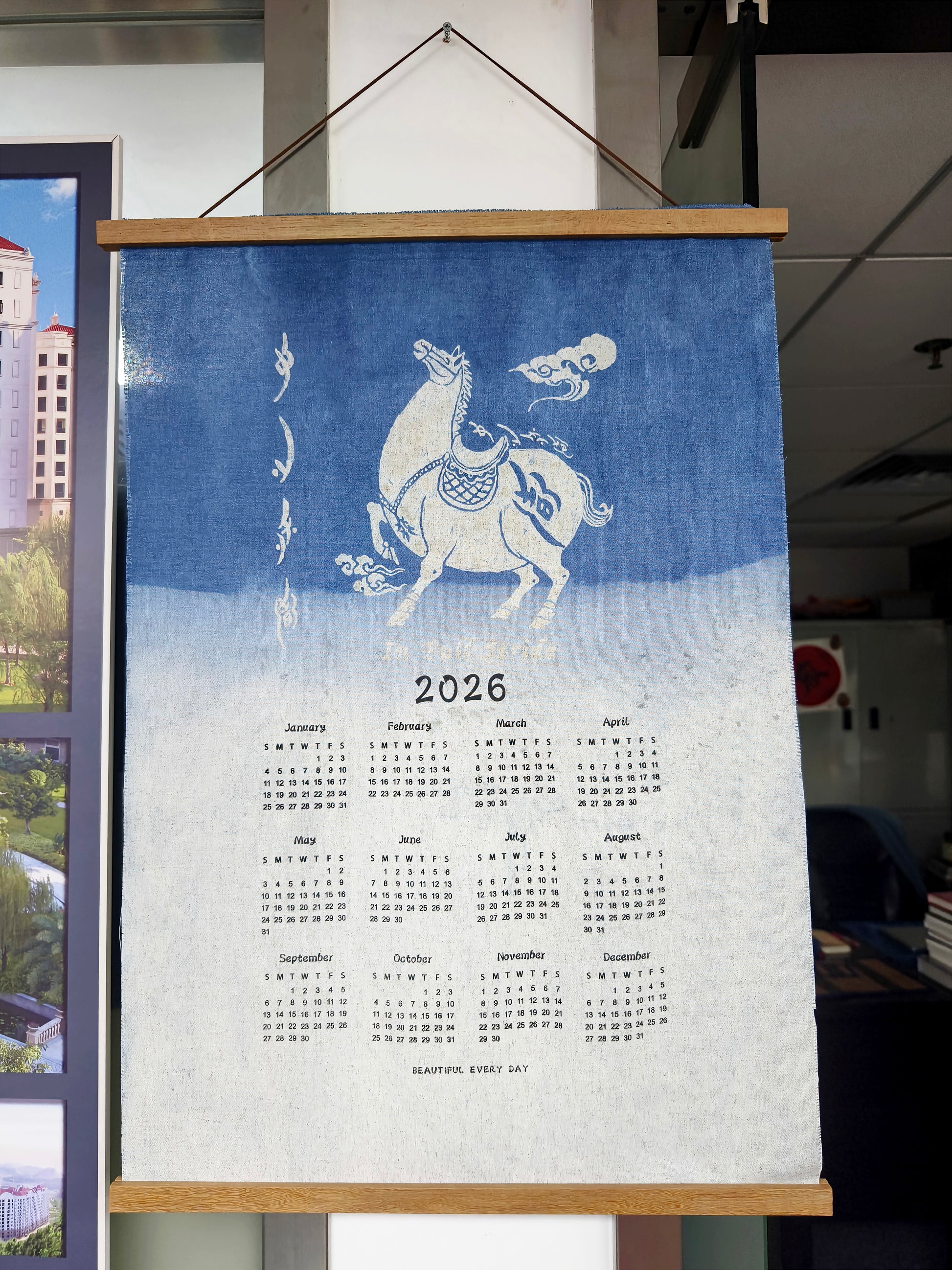 BA-02b: Hand-Painted Batik 2026 Chinese Zodiac Horse Calendar Wall Art -S
