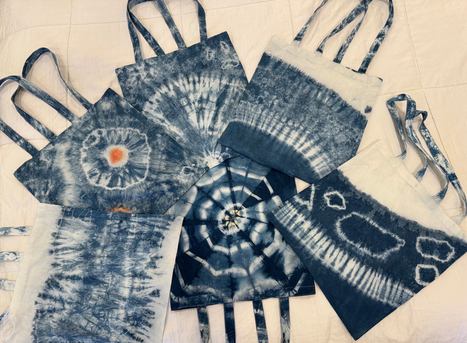 Crafted from 100% cotton and pre-washed for softness and durability, these totes are designed for everyday use while showcasing the beauty of slow, intentional craftsmanship. Subtle imperfections and variations are a natural part of the hand-dye process and are celebrated as a mark of authenticity.