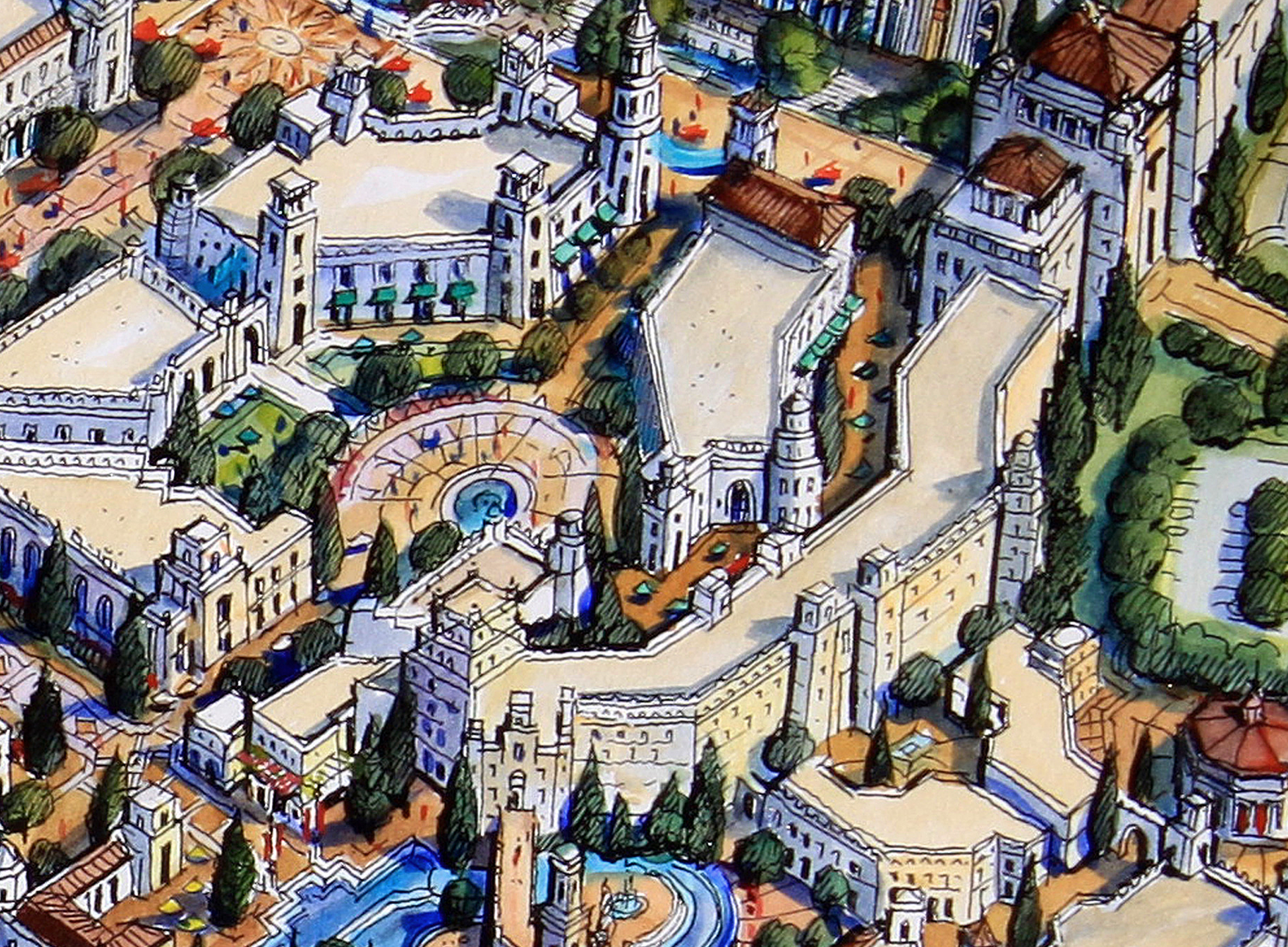 Style: Architectural illustration / Cityscape art / Aerial view art
