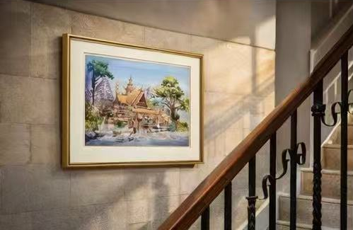 This piece reflects Kurt Xu’s signature style: expressive architectural detail balanced with fluid brushwork and gentle color transitions. The result is a calming yet richly detailed artwork that brings warmth and storytelling into any space.
