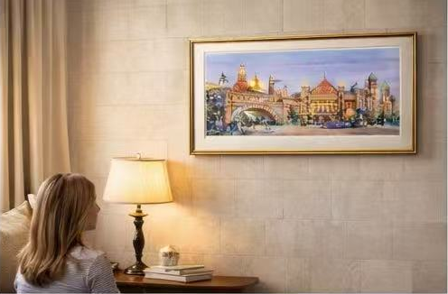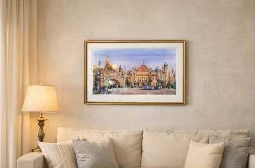 This artwork blends classic architecture with expressive watercolor movement, creating a timeless statement piece for living rooms, bedrooms, offices, or gallery walls.